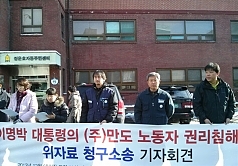 금속노조 만도지부가 이명박 전 대통령을 상대로 낸 ㈜만도 노동자 권리침해 위자료 청구소송에 대해 법원이 기각 판결을 내렸다.