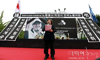 상복을 입은 상주들과 박정식 열사를 추모하기 위해 자리를 메운 노동자, 시민 등은 고개 숙여 엄숙한 표정으로 박정식 열사를 맞았다. 열사의 어머...