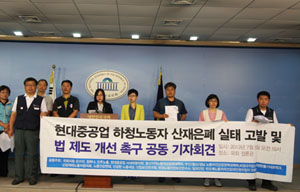 현대중공업 등 재벌 대기업의 지속적인 산업재해 은폐가 건강보험 재정 도둑질로 이어지고 있어 문제의 심각성이 제기됐다. 금속노조 현대중공업 사내하...