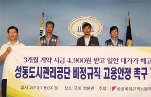 성동도시관리공단 비정규직 국회 기자회견...재고용, 고용안정 촉구