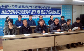 민주노총과 골든브릿지공대위는 23일 오전, 민주노총 대회의실에서 기자회견을 열고 집중투쟁 계획을 발표했다. 이들은 “파업 1년차인 4월 23일부...