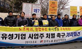 유성기업 사업주 처벌 촉구 무기한 단식농성 돌입