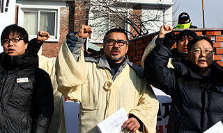 대통령직 인수위원회 앞에서 쌍용차 노동자들이 상복을 입고 밤을 샌다. 농성 하루 만에 노동자들의 울분이 터져 나온다. 경찰이 농성을 방해하기 위...