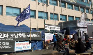 최강서 열사 유가족과 민주노총, 금속노조, 한진중공업지회 등은 4일 오전, 한진중공업 정문 앞에서 기자회견을 열고 “회사 측이 설 전에 사실상 ...