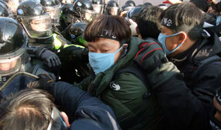 민주노총이 2일 오후 2시, 부산 한진중공업 영도조선소 앞에서 집중 결의대회를 열고 회사와 정권에 사태해결을 촉구했다. 이 과정에서 경찰과 집회...
