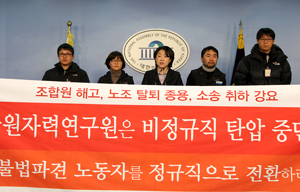 정부와 인수위에 비정규직, 정리해고, 노조파괴 문제 해결 요구