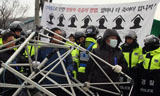 규탄 기자회견 뒤 텐트 재설치 하자 경찰병력 투입