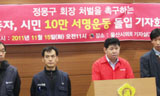 울산지역 21개 시민사회단체는 불법파견 철폐와 정규직화 쟁취를 위한 현대차비정규직 파업 1주년을 맞아 15일 울산시 프레스센터에서 기자회견을 열...
