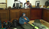 한진중공업 해고자 66명이 이틀째 중앙노동위원회의 일방적인 화해권고 결정에 반발해 공정 심판과 교섭 일정 확정을 요구하며 심판장을 지키고 있는 ...