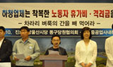 진보신당울산시당 동구당원협의회와 현대중공업사내하청지회는 10일 오전 울산시 프레스센터에서 기자회견을 열고 현대중공업 사내하청 노동자들의 휴가비와...