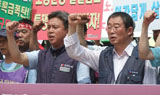 김영훈 민주노총 위원장과 이용득 한국노총 위원장이 20일 오전, 국회 앞에서 기자회견을 열고 노조법 개정안의 6월 국회 상정과 노사정 논의기구 ...
