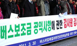 ‘버스파업 해결과 완전공영제 실현 전북지역시민사회단체 대책위’가 30일 전주시청에서 기자회견을 열고 전주시 버스보조금 관련 감사원 감사청구 운동...