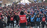 8일 새벽 파업에 돌입한 공공노조 서경지부 고려대, 연세대, 이화여대 청소노동자들이 오후 2시, 연세대학교 본관 앞에서 결의대회를 열고 파업 승...