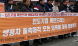 금속노조와 투기자본감시센터, 쌍용차졸속매각저지 대책위, 쌍용차지부는 11일 오전10시30분 서울 한남동 인도대사관 앞에서 ‘마힌드라&마힌드라의 ...