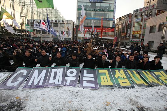 GM대우가 목숨을 걸고 정문 고공농성을 진행하고 있는 비정규직 노동자들에게 묵묵부답으로 일관하고, 심지어 시민사회의 교섭 중재까지 무시한다는 것...
