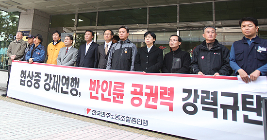 이날 경찰의 김 지부장 연행시도가 노사 대표 교섭 장소 화장실에 수십명의 사복경찰이 대기하고 있었다는 주장이 나왔다.