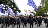 KEC 점거농성을 지원하기 위해 모인 민주노총 조합원 1천여명이 경찰의 공장 앞 집회 불허 조치에 항의하며 구미 시내 주요도로에서 기습 가두시위...