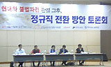 행정부를 향해선 “노동부가 불법파견업체에 과태료나 벌금 얼마씩 때리는 것은 하지말라”며 “외국의 법들은 형벌이 강한 게 아니라 집행하도록 하는 ...
