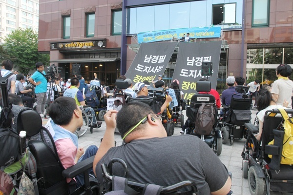 "남경필 나와라" 고공 단식농성 2일차, 전국 장애인 모여 집중 집회