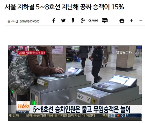 연합뉴스에 달린 네이버 댓글 중 상위 5개의 댓글 내용. 노인 등 지하철 무임승차자에 대한 혐오가 적나라하게 드러난다.