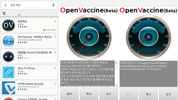 국정원이 이탈리아 해킹팀 프로그램을 구입한 사실이 드러나면서 불안해하는 시민들을 위해 오픈넷, 진보네트워크센터, P2P재단코리아준비위원회는 안드...