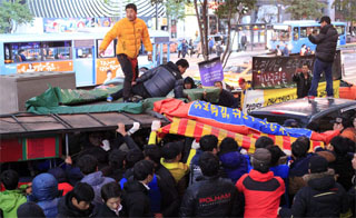 강남역 씨티극장 앞, 합동장사를 하고 있는 천막 안에서 노점상 윤춘애(79) 씨를 만났다. 윤 씨에게 강남역 노점 철거 상황을 묻자, 단번에 울...