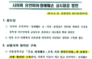 검찰이 9.16 박근혜 대통령의 말씀에 따라 직접 포털 사이트 등을 실시간 모니터 하고 삭제 요청을 하는 검찰-포털사 핫라인 구축을 요구한 것으...