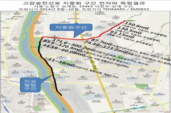 국회 환경노동위 장하나 새정치민주연합 의원과 환경보건시민센터, 서울대 직업환경연건강연구실 등이 서울지역 송전선로 지중화 구간 전자파 실태 조사 ...