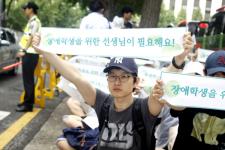 정부가 애초 대선공약으로 약속했던 것과는 달리 특수교사 충원 계획을 대폭 축소한 것으로 알려지자, 전국 특수교육과 대학생들이 반발하고 나섰다.