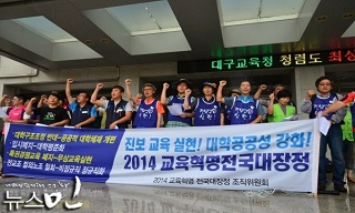 입시경쟁·대학등록금 폐지와 학교 비정규직 정규직화에 대한 요구가 제기됐다. 2014교육혁명대장정은 14일 오전 10시 대구교육청 앞에서 기자회견...