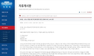 교육부가 청와대 누리집의 자유게시판에 글을 올려 박근혜 정권 퇴진운동을 선언한 43명의 교사들에 대해 엄정대응 입장을 밝혀 파문이 예상된다. 1...