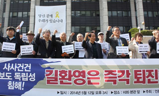 민주언론시민연합, 언론노조, 언론개혁시민연대 등 16개 언론·시민단체가 12일 오후 3시 서울 여의도 KBS본관 앞에서 기자회견을 열고 KBS ...