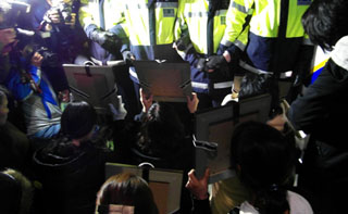 세월호 참사 희생자 유족들이 박근혜 대통령과의 면담을 요구하며 청와대 앞에서 밤샘 연좌에 돌입했다. 경찰 병력은 박근혜 대통령과의 면담을 요구하...