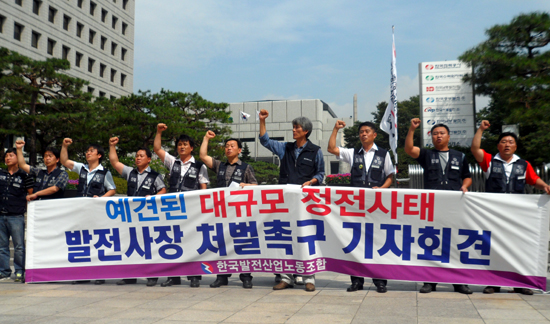발전노조는 16일 오후 1시 서울 삼성동 한국전력 본사 정문앞에서 전력대란 사전경고를 무시해온 발전사 사장과 최중경 지식경제부 장관이 15일 정...