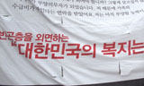 "우리는 이번 1박2일 투쟁을 통해 이명박 정부의 복지와 보건복지부의 죽음을 선고하고, 이번 6월 임시국회에서 반드시 기초법 부양의무자 기준을...