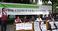 금융경제연구소, 투기자본감시센터, SC제일은행노동조합, 하나로텔레콤노동조합은 12일 광화문 정부청사 앞에서 기자회견을 갖고 '금융과 통신 등 기...