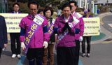 합동유세장에서 뜨겁게 만난 노란색 개나리와 보라색 진달래의 깔맞춤(색깔맞춤) 야권연대는 80년대부터 이어온 학생운동, 노동운동, 시민운동이 함께...