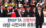 이명박 대통령의 미국 국빈방문에 맞춰 한미 FTA 국회 비준이 초읽기에 들어가자, 야6당이 비준동의안 저지에 나서겠다고 한 목소리를 모았다. 심...