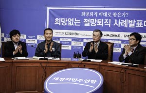 새정치민주연합이 당 을지로위원회 주도로 희망퇴직과 명예퇴직 규제를 위해 본격적인 입법 논의를 진행하기 시작했다.