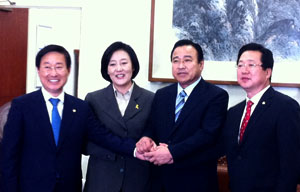 26일 오전 11시 30분께 박영선 원내대표와 우윤근 정책위의장은 이완구 원내대표가 있던 국회 운영위원장실을 찾아가 도시락을 먹으며 세월호법 협...
