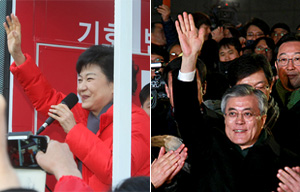 박근혜, “최초 여성대통령”, 문재인, “안철수.심상정 야권단일화”