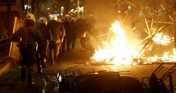 경찰 총격으로 숨진 안드레아스 그리고로풀로스의 장례식이 지난 후에는 시위의 양상이 더욱 격렬해 지고 있다.