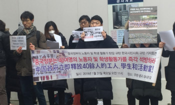 한국 노동운동과 국제연대 단체들이 최근 논란이 된 중국 당국의 노동운동과 마르크스주의 학생운동 탄압을 규탄하며 항의행동을 벌였다. 민주노총, 국...