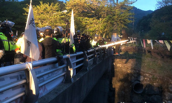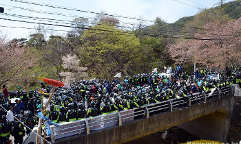 22일 오후 6시40분쯤 경북 성주군 초전면 소성리 사드(THAADㆍ고고도미사일방어체계) 기지 인근 진밭교에서 경찰과 사드 반대단체 회원들이 간...
