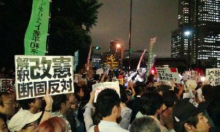 “일부 정치가의 소수 의견으로 집단적 자위권 행사 허용 문제를 결정하다니 용서할 수 없다. 국민 대다수는 반대한다. 정부가 국민의 소리를 들으려...