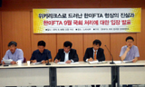 24일 오후 2시부터 국회에서 한미FTA 끝장토론이 진행되고 있다. 장외에서는 각계각층 인사들이 “한미FTA 비준 반대”를 한 목소리로 외치고 ...