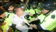 이날 처음 투입된 경찰관 기동대는 형광 녹색 우의 위에 각종 보호장구를 두르고 진압봉과 둥근 방패를 들었다. 그러나 대부분의 시민들이 물러난 후...