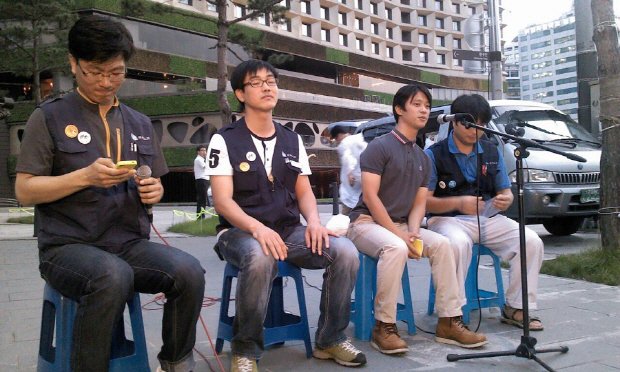 윤주형 씨가 울먹이자 청중들이 힘찬 응원의 박수로 보내준다. 이야기는 자연스럽게 이동우 씨에게 넘어온다. 이동우 씨는 투쟁의 과정에서 정견과 그...