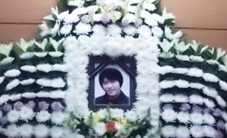 금속노조 기아자동차지부가 故 윤주형 조합원의 빈소에 조문을 왔다. 장례식장 앞에서는 촛불집회가 진행되고 있다. 기아자동차지부 정규직 집행 간부들...