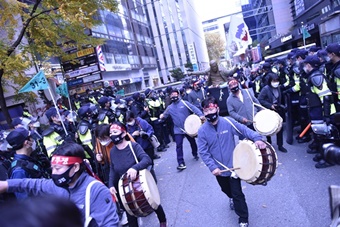 민주노총은 14일 오후 서울 여의대로 여의도공원에서 전태일 50주기 열사정신계승 노동자대회를 개최했다. 이번 대회는 코로나19로 대규모 서울 집...